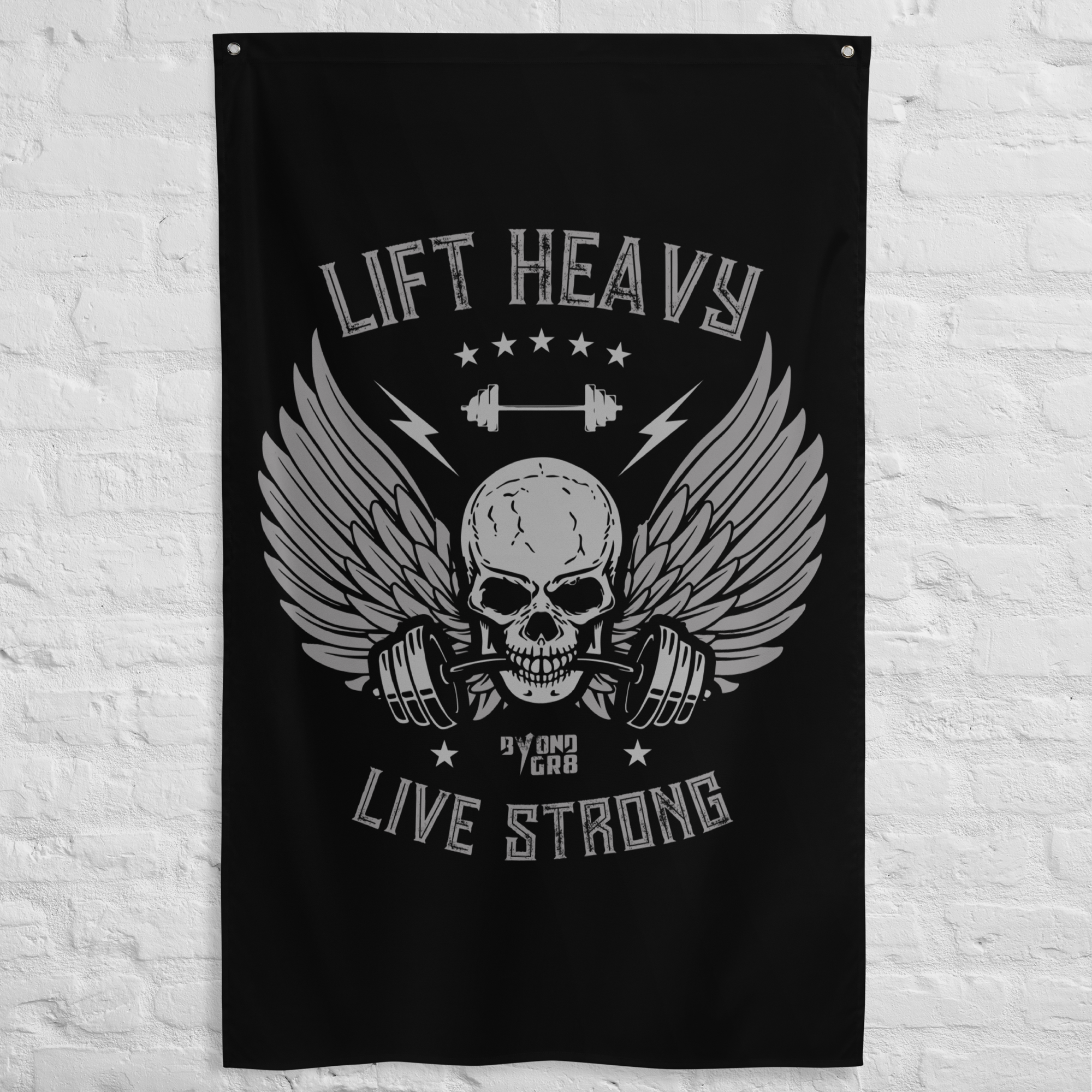 Add some motivation and decor to your home, garage or powerlifting gym with the Lift Heavy Live Strong gym flag. Add some character and lifting inspiration to your space with a unique flag that speaks to what you love doing... lifting heavy weights. Your flag won’t crease or shrink thanks to the polyester material and will last a very long time.