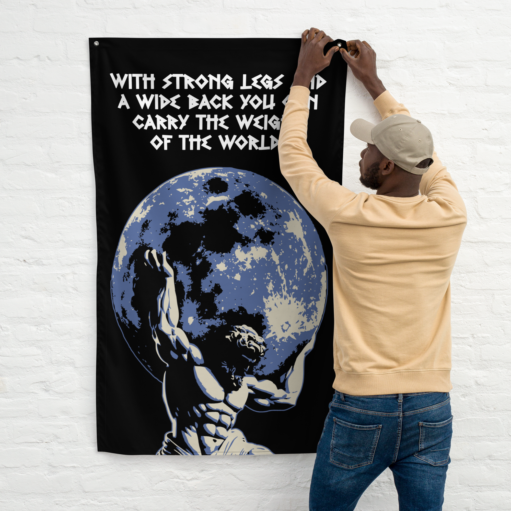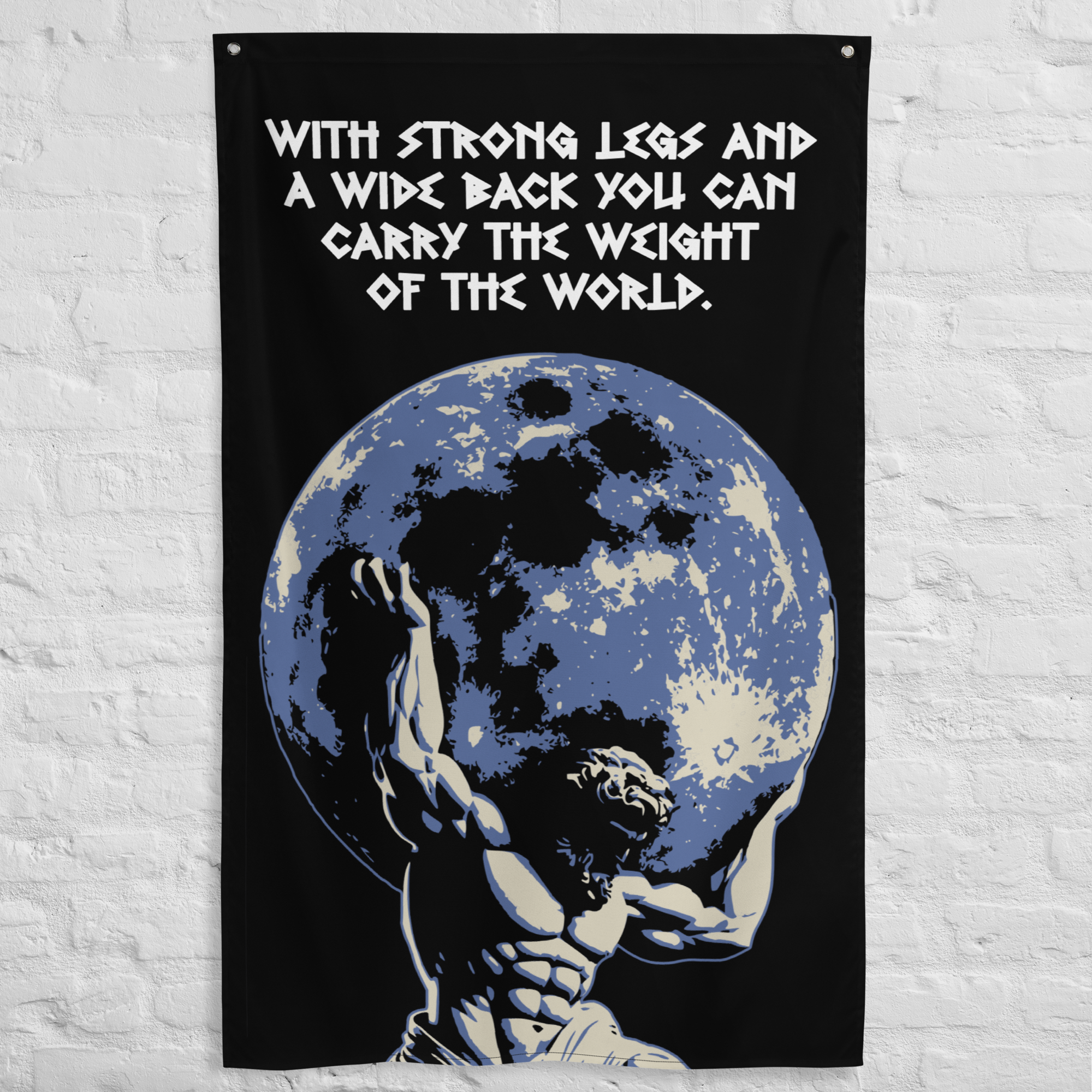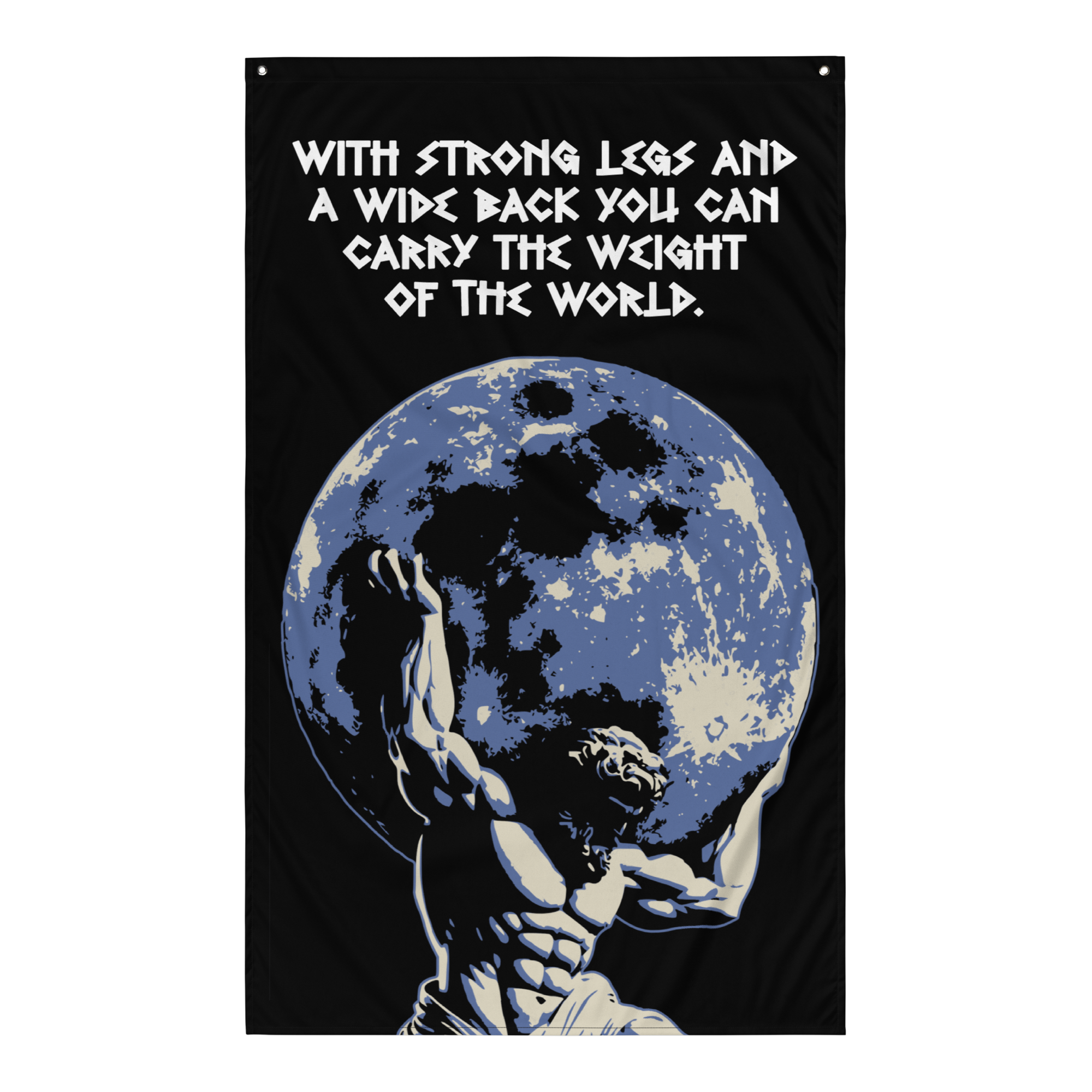 The Strong Legs Wide Back Gym Flag is the perfect motivation for building broad shoulders, a wide back and tree trunk legs. Add some motivation and decor to your home, garage or powerlifting gym with this gym flag. Add some character and lifting inspiration to your space with a unique flag that speaks to what you love doing... lifting heavy weights. Your flag won’t crease or shrink thanks to the polyester material and will last a very long time.